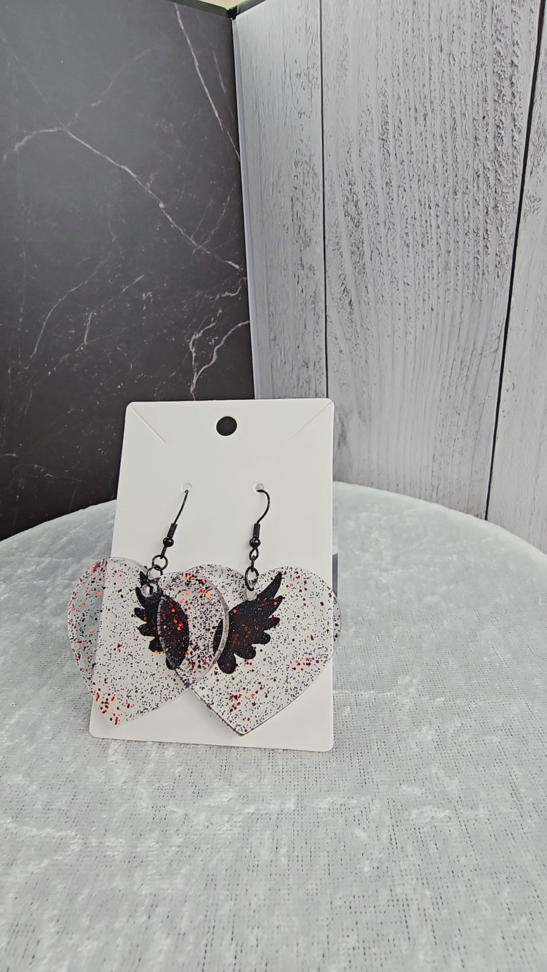 Add a touch of elegance and sophistication to your outfit with these stunning black stainless steel fish hook style earrings. The earrings feature premium epoxy resin clear heart shaped pendants filled with red and black glitter, creating a mesmerizing effect that catches the light beautifully.