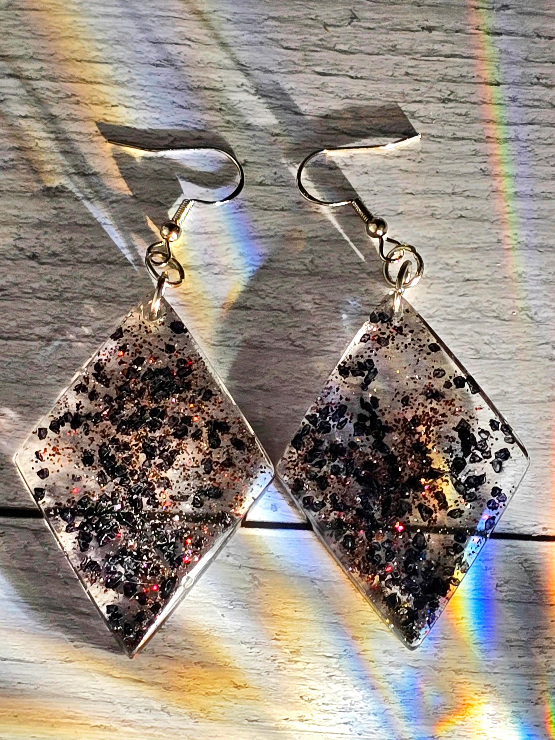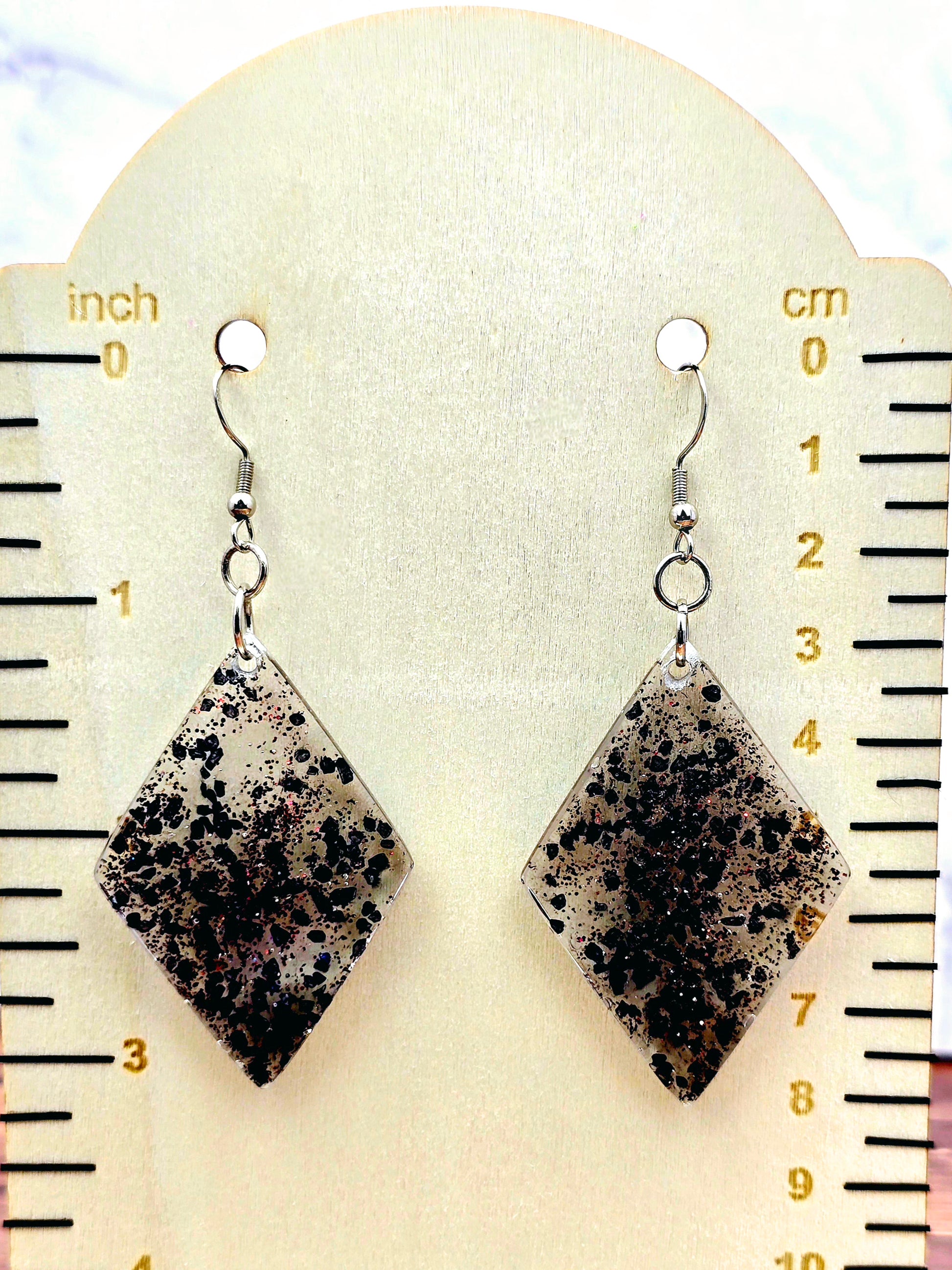 Black Sprakly Diamond Shaped Hook Earrings
