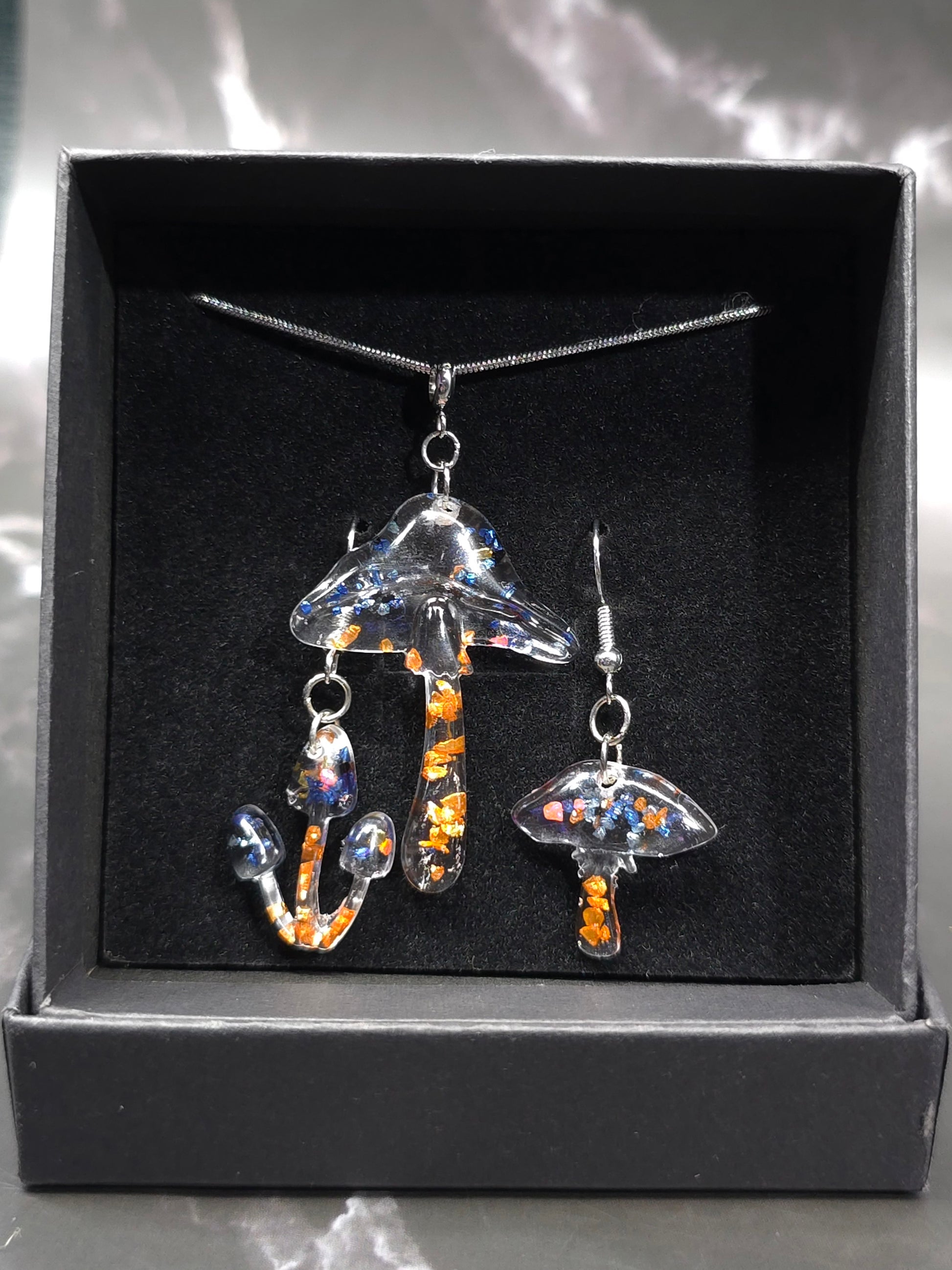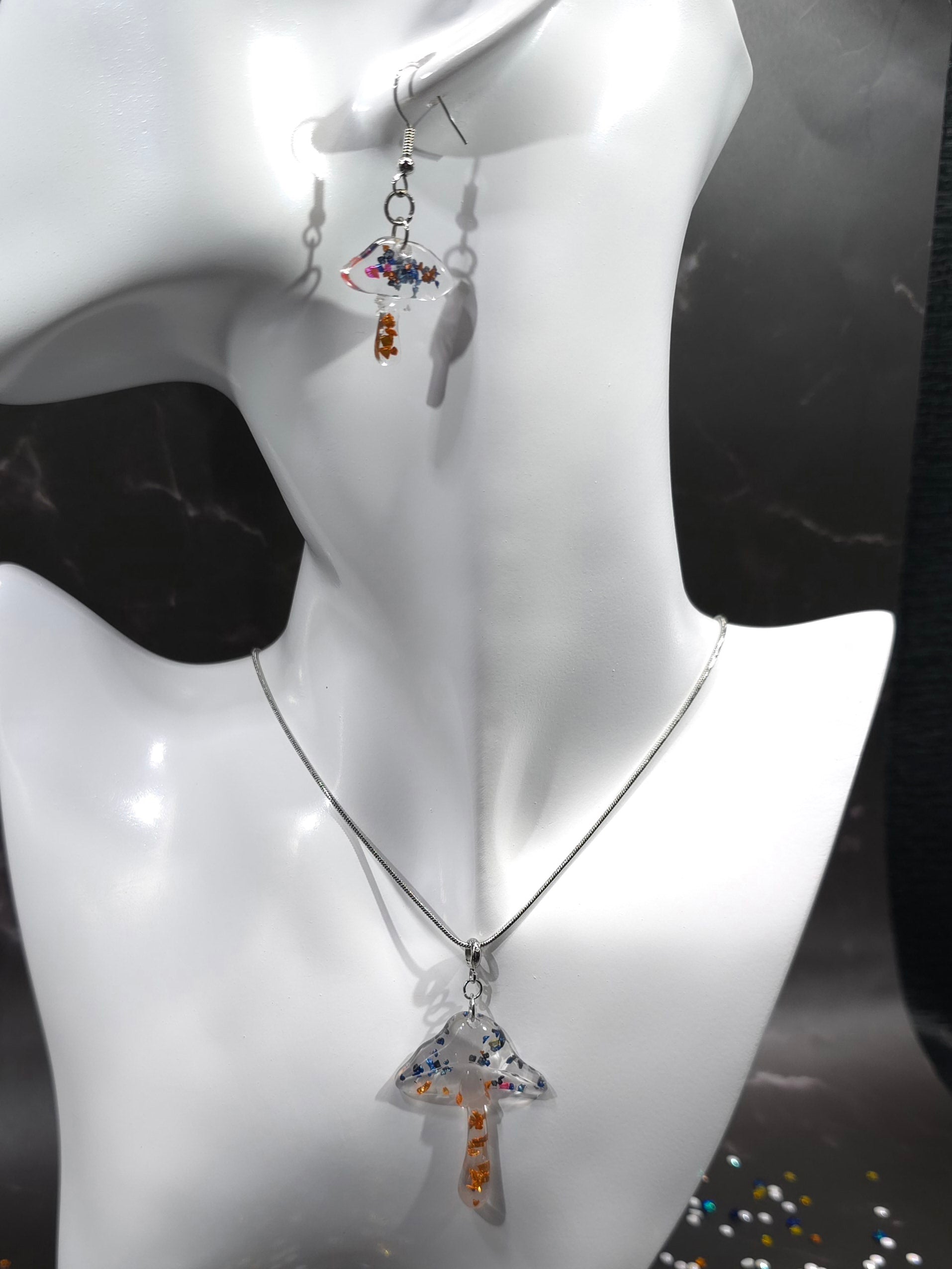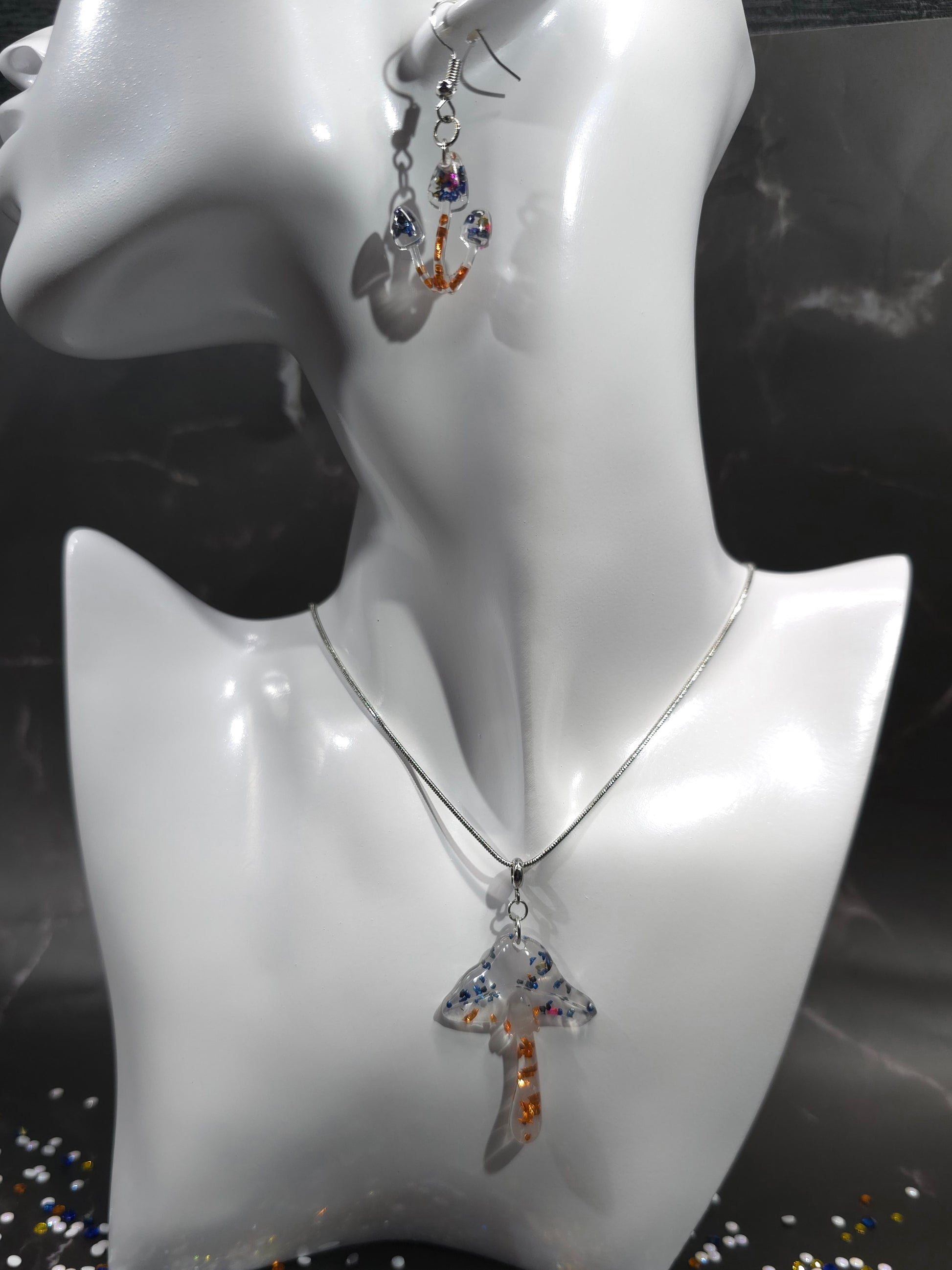 Add a touch of whimsy to your ensemble with this corky mushroom necklace and earring set. Made with durable stainless steel, the set is both fun and functional. The stainless steel snake chain necklace and hooks ensure long-lasting wear, perfect for any outfit. This necklace is 51cm long, with a drop length of 31.5cm (including mushroom pendant). Mushroom pendant is 5.5cm long by 3cm wide (at widest point of pendant). The earrings in this set are a mismatch pair. The 3 mushroom earring is 4cm long, with a drop length of 3cm. 3-Mushroom pendant is 2cm long by 1cm (wide at widest point). 1-Mushroom pendent earring is 4cm long, with a 3cm drop. The pendant is 2cm long by 2cm wide (at the widest point).