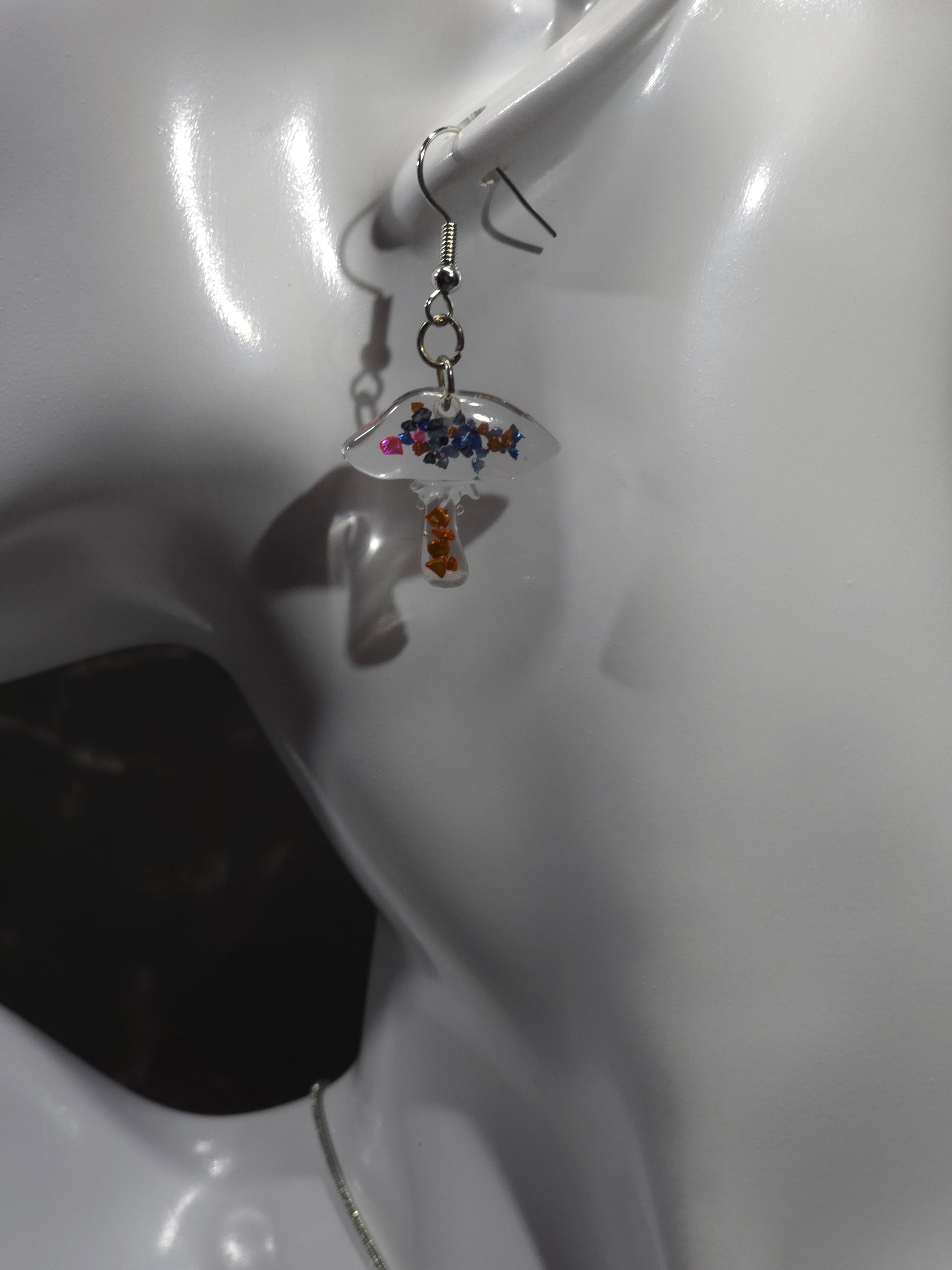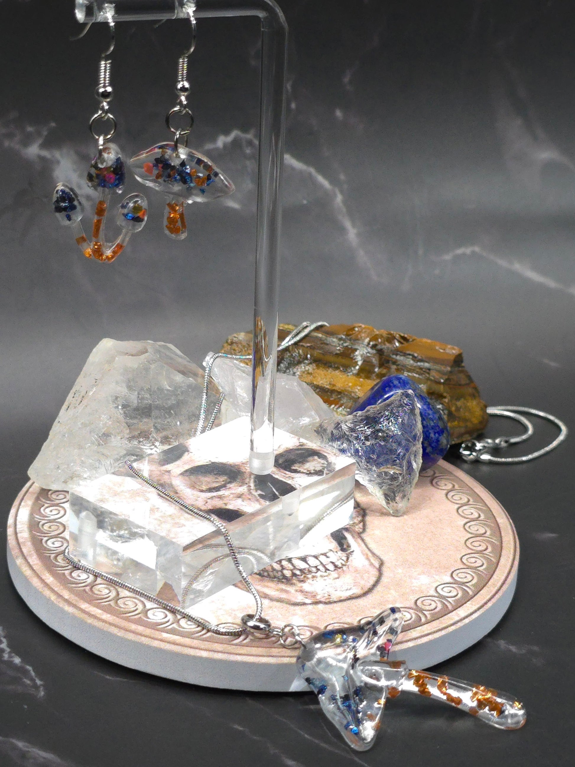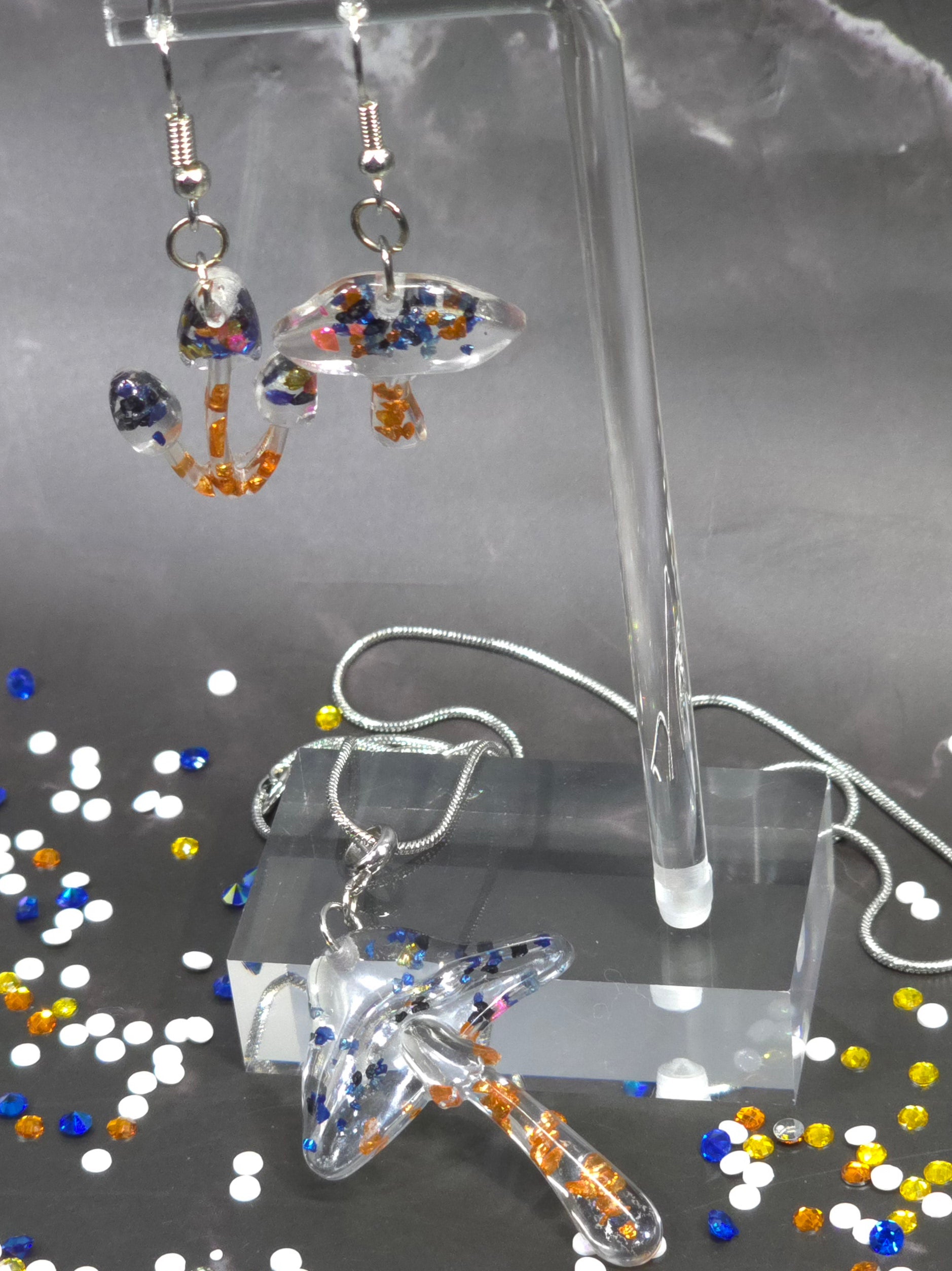 Add a touch of whimsy to your ensemble with this corky mushroom necklace and earring set. Made with durable stainless steel, the set is both fun and functional. The stainless steel snake chain necklace and hooks ensure long-lasting wear, perfect for any outfit. This necklace is 51cm long, with a drop length of 31.5cm (including mushroom pendant). Mushroom pendant is 5.5cm long by 3cm wide (at widest point of pendant). The earrings in this set are a mismatch pair. The 3 mushroom earring is 4cm long, with a drop length of 3cm. 3-Mushroom pendant is 2cm long by 1cm (wide at widest point). 1-Mushroom pendent earring is 4cm long, with a 3cm drop. The pendant is 2cm long by 2cm wide (at the widest point).