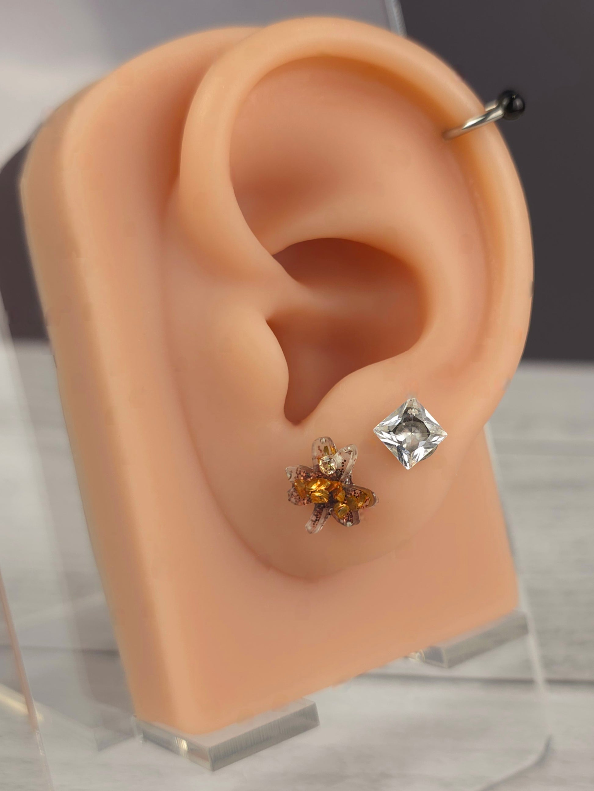 The focal point of these earrings is the premium epoxy resin pendant, which is shaped like an oak leaf and adorned with a beautiful white cubic zirconium gemstone. These earrings are 1.25cm long by 1cm wide. The combination of the stainless steel earrings and the sparkling gemstone pendant creates a sophisticated and eye-catching accessory that will elevate any outfit.