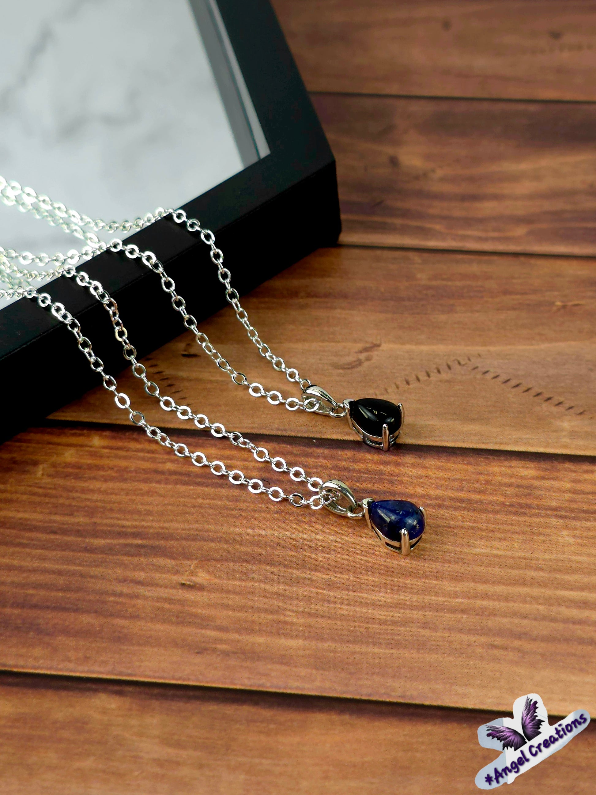 Complementing the gemstone is a choice of chain lengths—18", 19", or 20"—crafted from either sterling silver or durable stainless steel. The lobster claw clasp guarantees security and ease of wear, making this necklace perfect for both everyday elegance and special occasions.