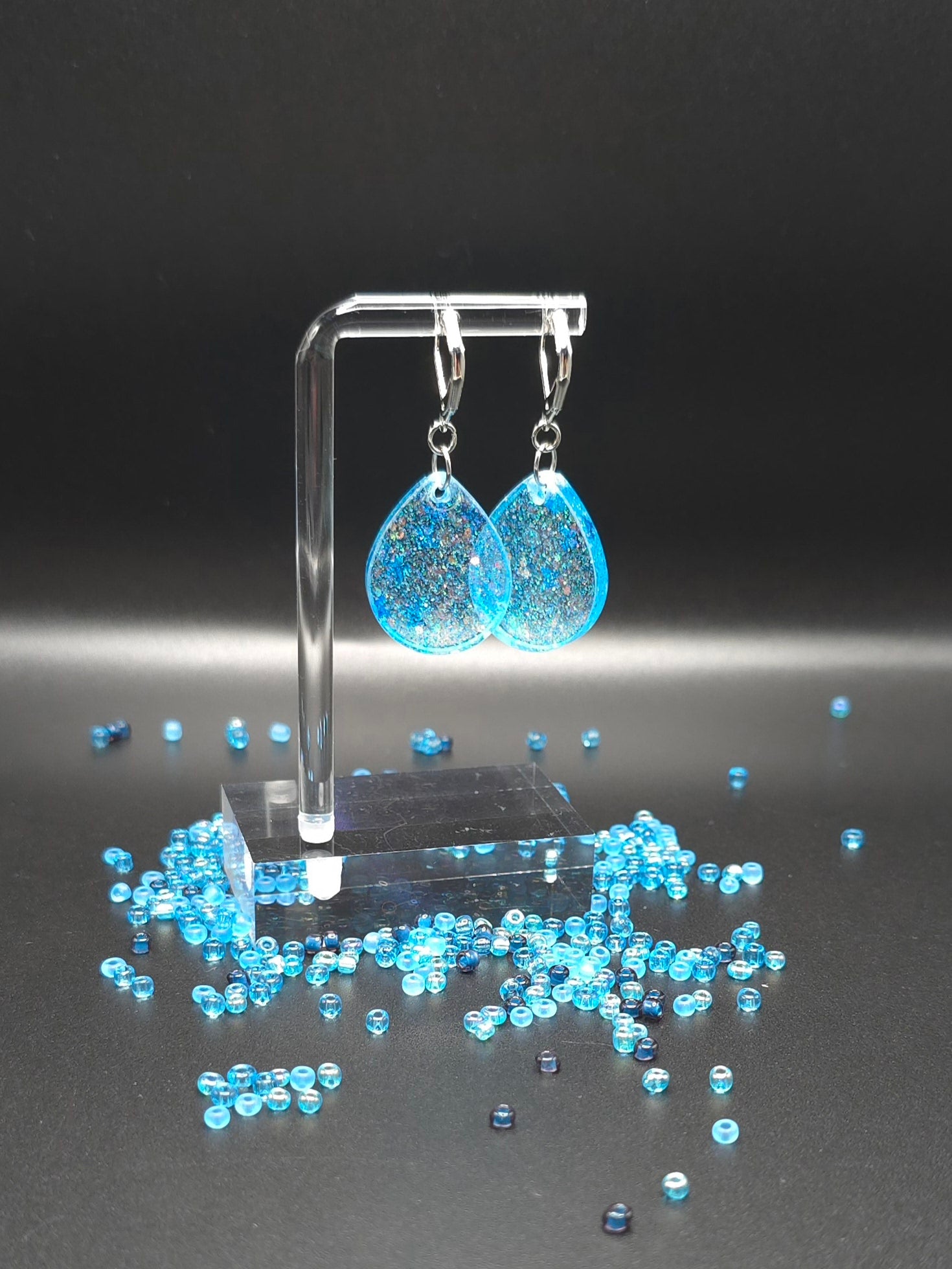 Blue Glitter TearDrop Resin Earrings